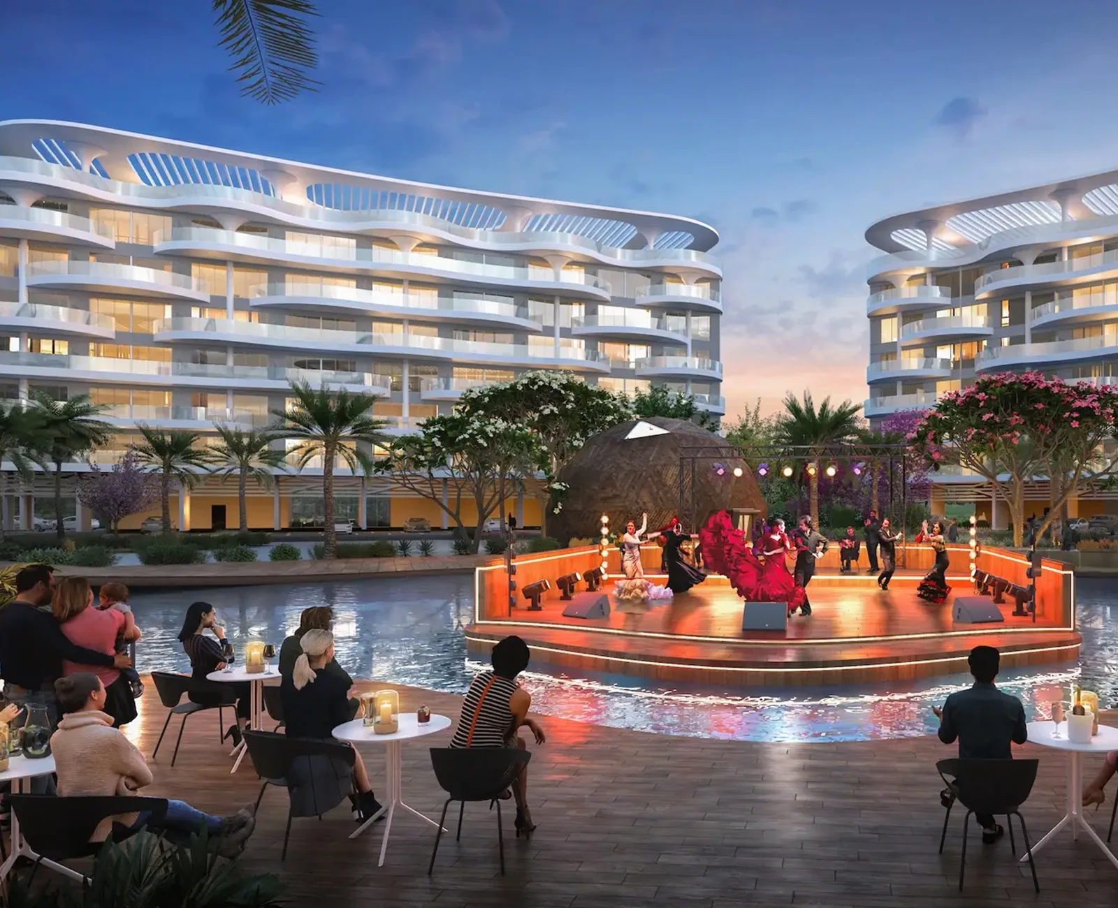 Designed with relaxation and modern living in mind, the development features unique architectural styles influenced by cities such as Santorini, Venice, and Morocco. The area is still developing, with new projects continuously adding to its charm, ensuring excellent potential for capital growth and high livability.