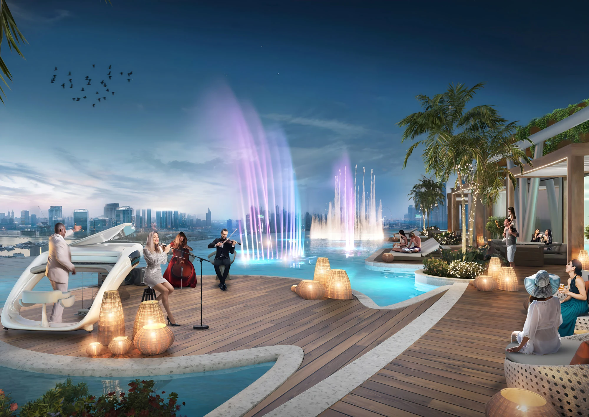Damac Bay 2 by Cavalli, located in Dubai Harbour, boasts an impressive lineup of luxurious amenities tailored for an elite waterfront lifestyle. Residents can indulge in three infinity pools with lounge areas, a unique zero-gravity pod experience, and a dedicated yoga studio offering serene views of the Dubai skyline and Ain Dubai wheel. Wellness enthusiasts can benefit from a spa featuring tropical treatments and innovative floating Jacuzzis. Additional highlights include a sushi and juice bar, glamping tents, and a Cavalli-inspired museum and fashion studio.