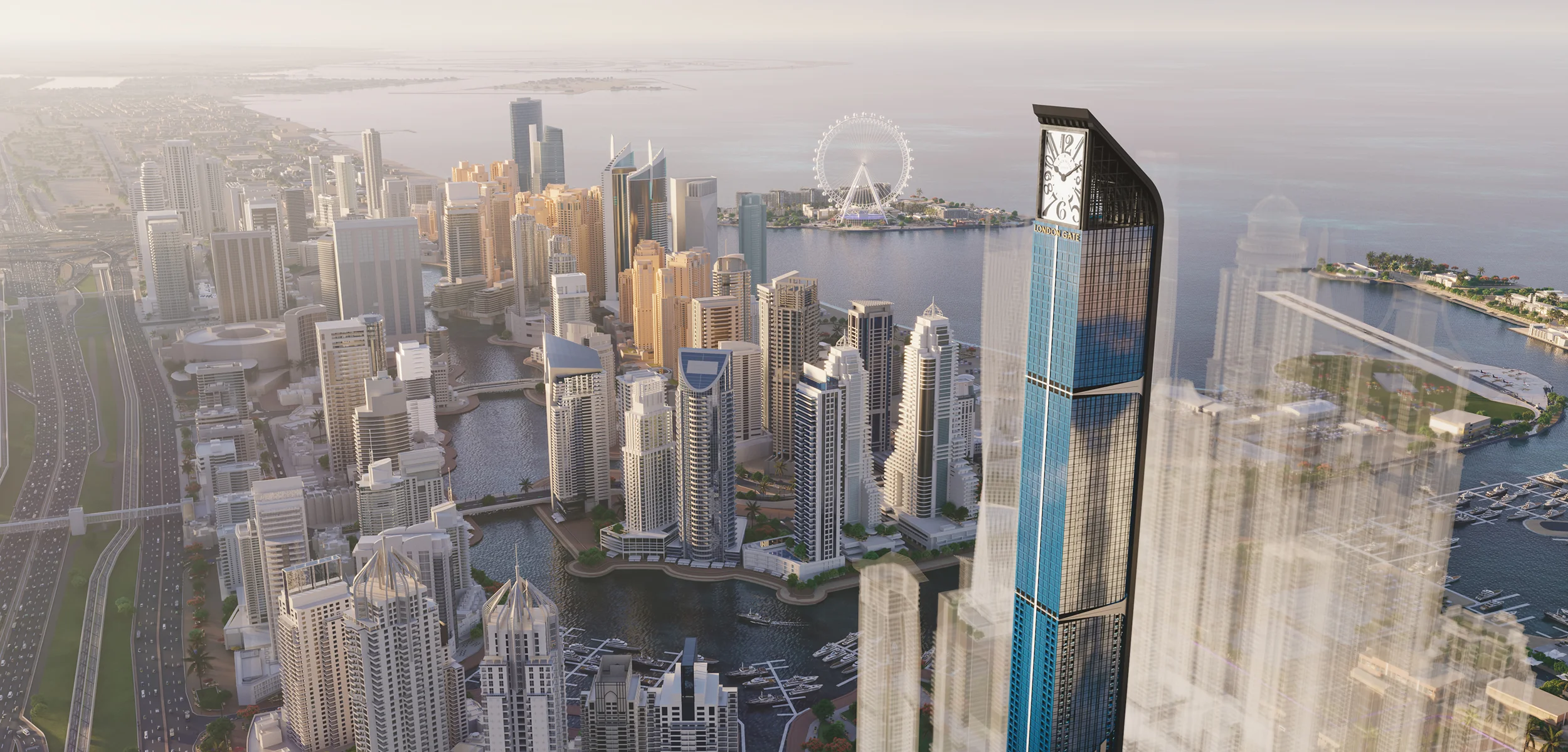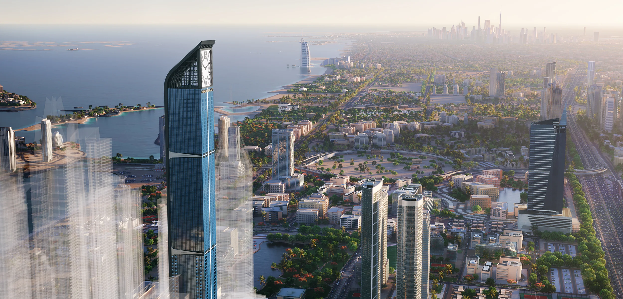 Developed by the renowned UAE-based London Gate and the famous Swiss watchmaker Franck Muller, this ambitious project will have 106 floors, reaching an incredible 1,476 feet above sea level. Inspired by Franck Muller’s most complex watch design, the tower is expected to be completed by Q2 2027. The homes within this iconic building range from 871 to 8,582 sq. ft., and all villas and mansions come with Bosch-equipped kitchens, smart storage solutions, and stunning views of the Dubai skyline.