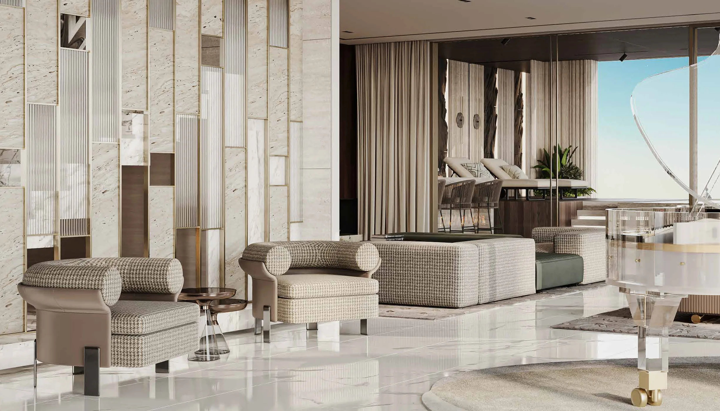Inside, the residences feature modern architecture and high-end materials, with an emphasis on panoramic views of landmarks like the Palm Jumeirah. The layout includes well-designed communal areas, sports courts, a community hall, and BBQ areas, making it ideal for both leisure and socializing. Each unit comes with carefully curated interiors and smart living spaces, reflecting the precision and luxury synonymous with Franck Muller’s craftsmanship, while the surrounding amenities ensure a lifestyle that’s both convenient and indulgent.