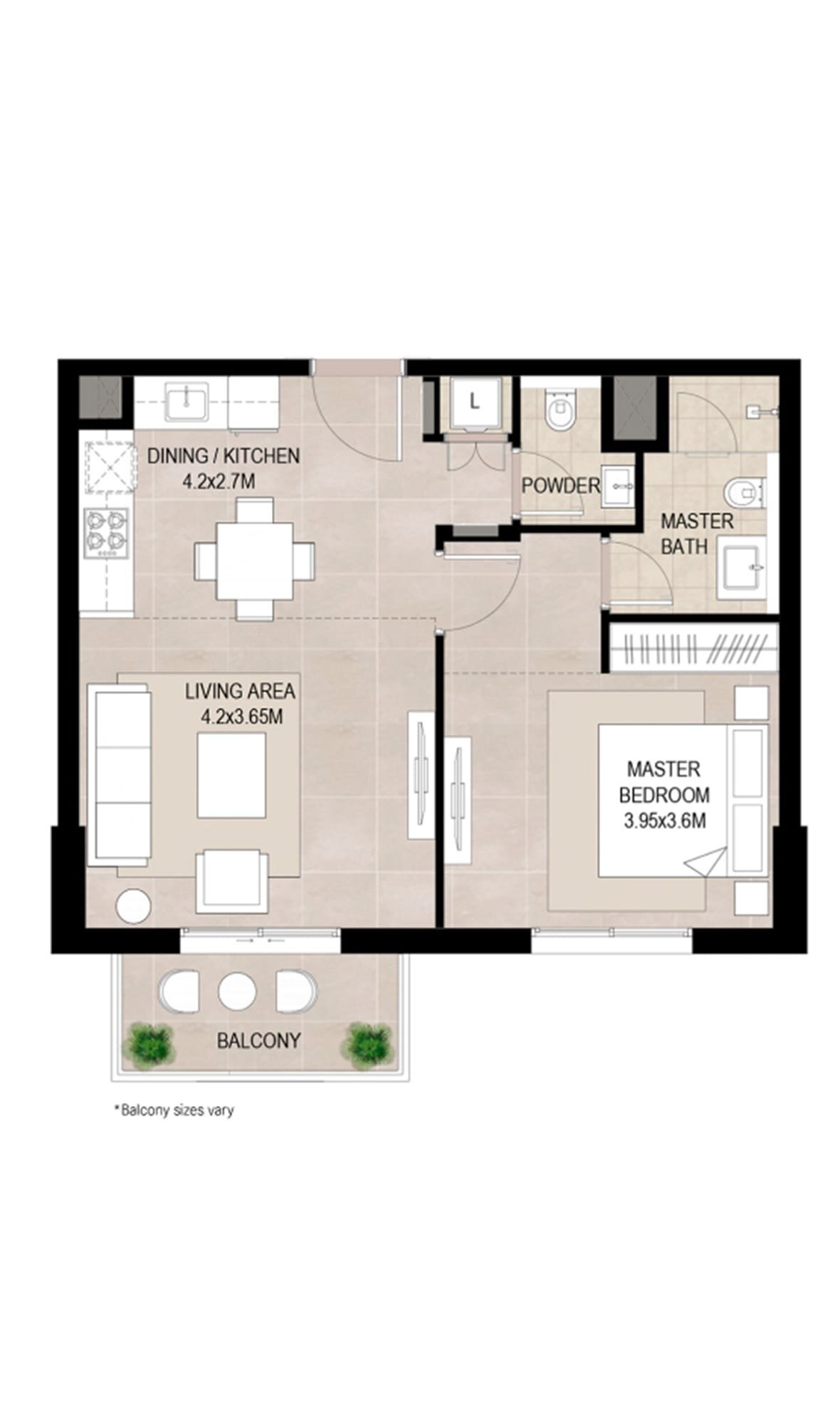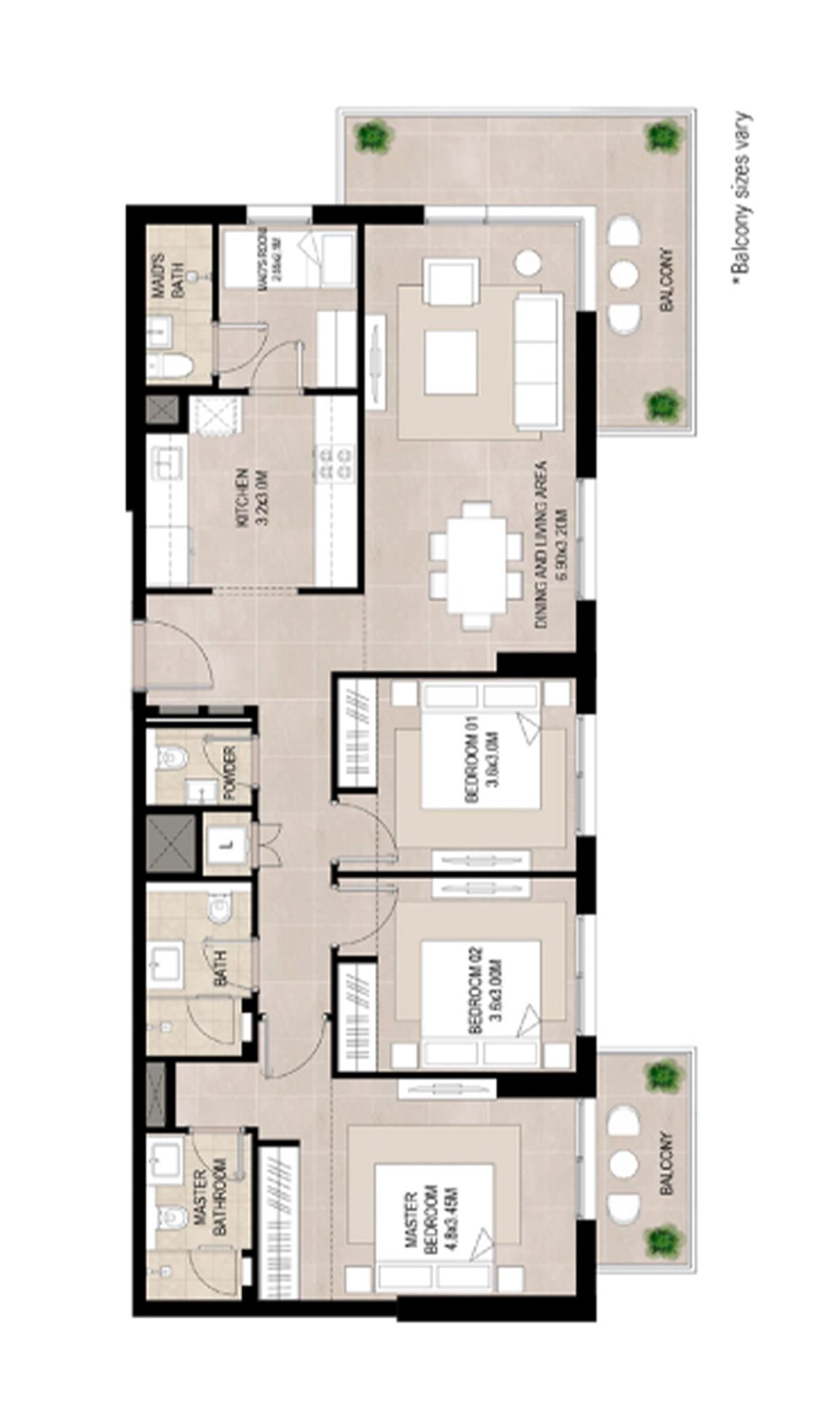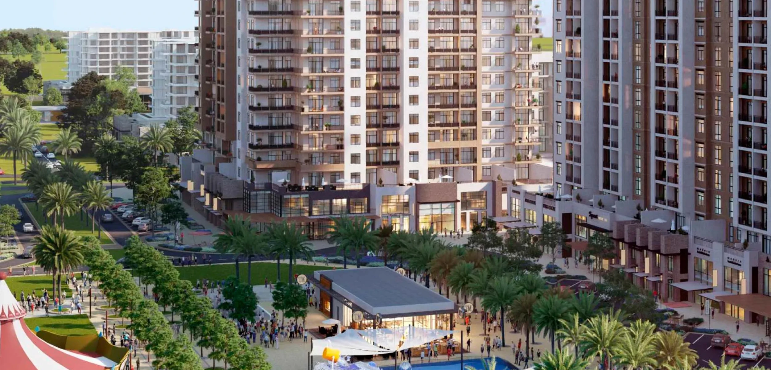 The project offers a range of 1, 2, and 3-bedroom apartments with modern designs, functional layouts, and premium finishes.